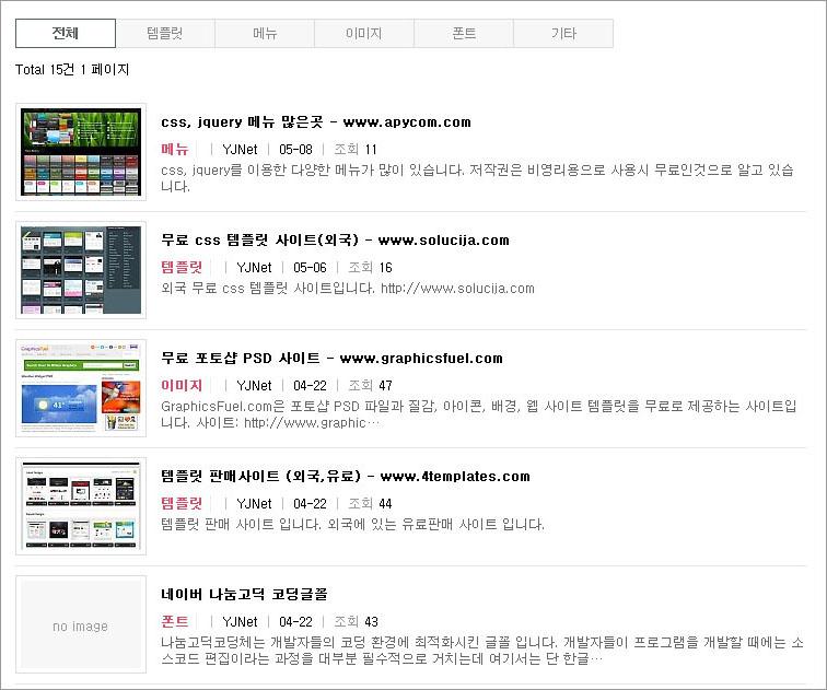 웹진형 게시판 스킨 정보