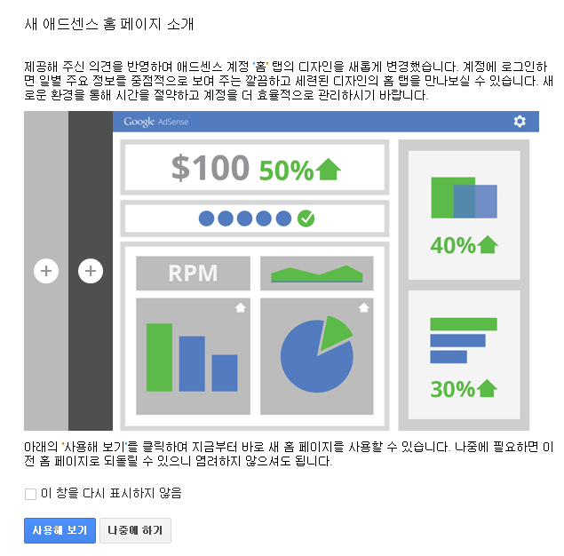 애드센스 홈이 진화하는군요 정보 애드센스 홈이 진화하는군요 말러83 홈페이지 자기소개 아이디로 검색 회원게시물 홈페이지 자기소개 아이디로 검색 회원게시물 2013.11.20 12:45:42 조회 2,152 댓글 1 이전 게시글 다음 게시글 목록 본문 예전보다 깔끔하고 중요한 정보를 더 많이 담게 바뀐 것 같습니다. 수익을 많이 낸 국가나 접속환경 등등 대박 0 댓글 전체 l2zeo 자기소개 아이디로 검색 회원게시물 자기소개 아이디로 검색 회원게시물 13.11.20 20:05:50 이글를 보고 바로 변경했습니다.깔끔하고 말씀처럼 중요한 정보들를 한눈에 볼수 있어서 좋네요. 이글를 보고 바로 변경했습니다.깔끔하고 말씀처럼 중요한 정보들를 한눈에 볼수 있어서 좋네요. 이전 게시글 다음 게시글 목록