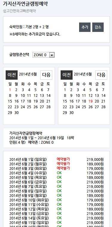 글램핑장 예약시스템입니다. 예약중복방지 위해서 .. AJAX로 체킹까지합니다. 정보