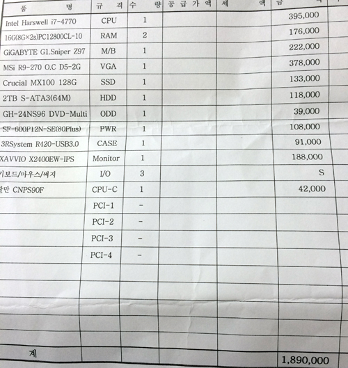 일러스트/포토샵등 쌩쌩 돌리고 싶다 하여 뽑은견적인데...