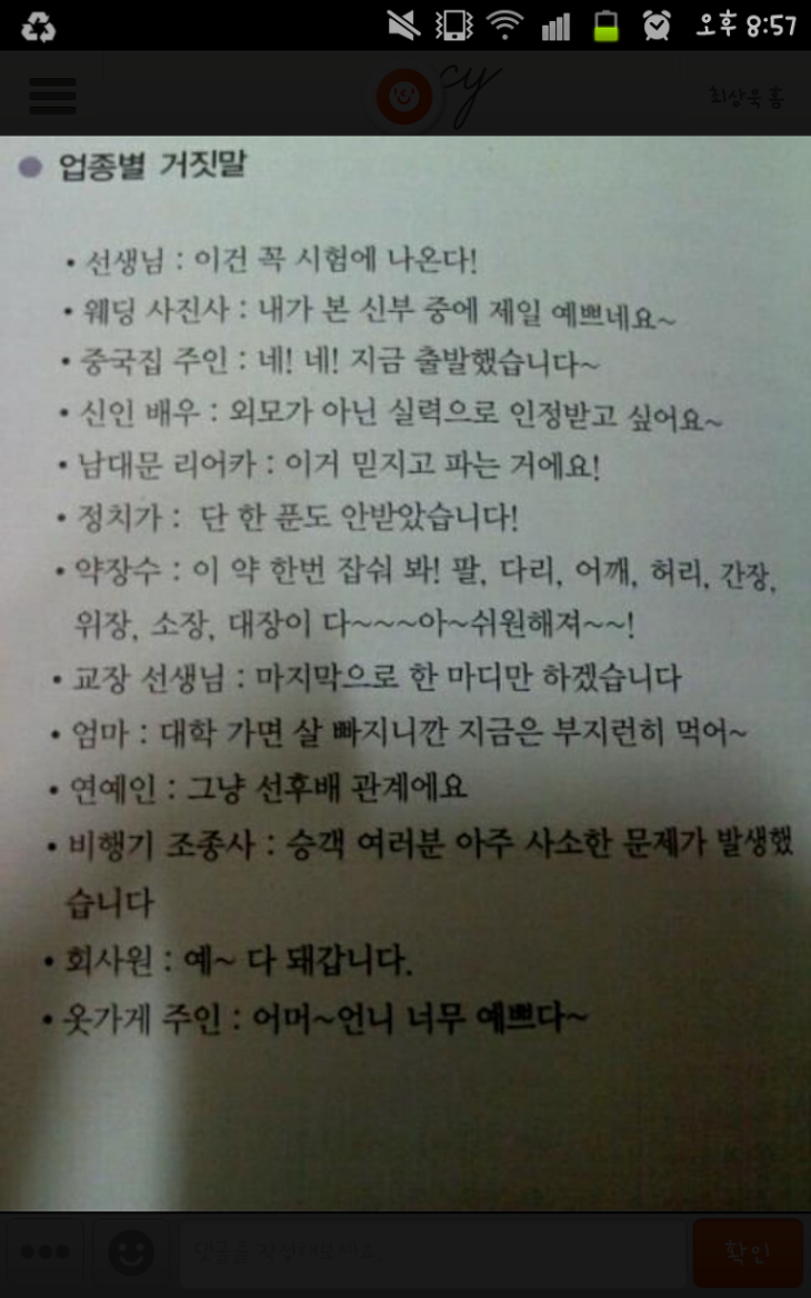 [유머] 업종별 거짓말..jpg 정보 [유머] 업종별 거짓말..jpg 바람모리 자기소개 아이디로 검색 회원게시물 자기소개 아이디로 검색 회원게시물 (180.♡.♡.204) 2013.05.07 20:58:03 조회 803 댓글 1 이전 게시글 다음 게시글 목록 글쓰기 본문 추천 0 댓글 1개 레어닉 자기소개 아이디로 검색 회원게시물 자기소개 아이디로 검색 회원게시물 (124.♡.♡.150) 13.05.09 12:07:57 ㅎㄷㄷㅋㅋ 추천 0 싫어요 0 댓글 설정 댓글 신고 ㅎㄷㄷㅋㅋ 이전 게시글 다음 게시글 목록
