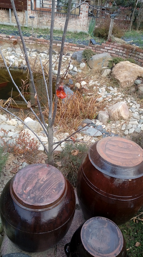 지금 생각해보니 감나무가 커서 장대로 닿지 않는 곳에 감이 있어서 따지못해서 그냥 두었을 수도 있겠어요...