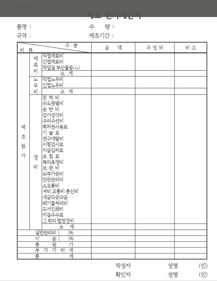 홈페이지 제작 제조 원가계산서 작성하는 법좀 알려주세요 정보