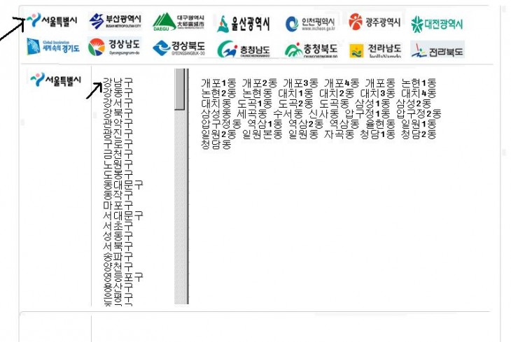 그리고 강남구를 클릭하면 옆에 그하위 결과가 나오도록 하고싶은데 어떤식으로 만들어야할까요...