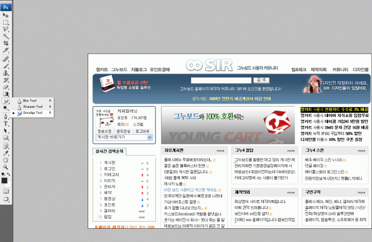 3. 포토샵을 열고 붙였습니다. 손가락으로 겁나 문질렀습니다.