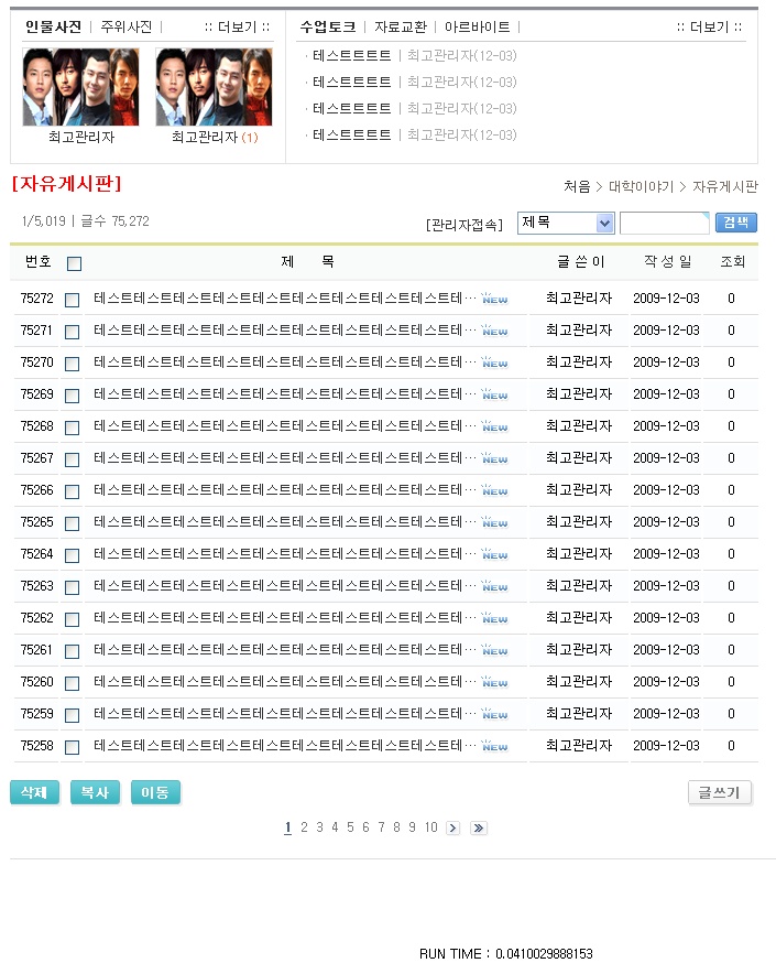 게시판 상단의 탭방식 최근게시물 함수 만든다고 쌩XX를 했네요..ㅡㅠ