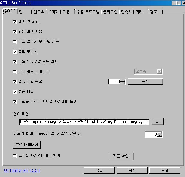 다운 받은 사이트 주소는 http://qttabbar.wikidot.com 입니다