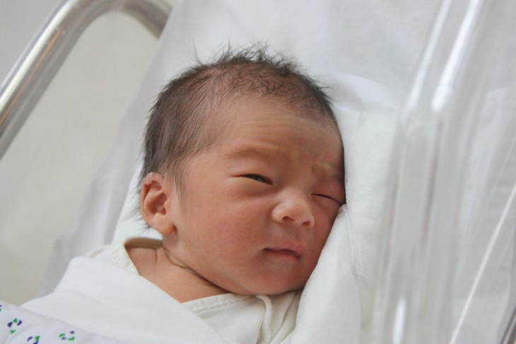 신생아가 아주 잘생겼습니다. 눈썹도 예사롭지 않고 코도 오똑하고 귀도 아주 예쁘네요.