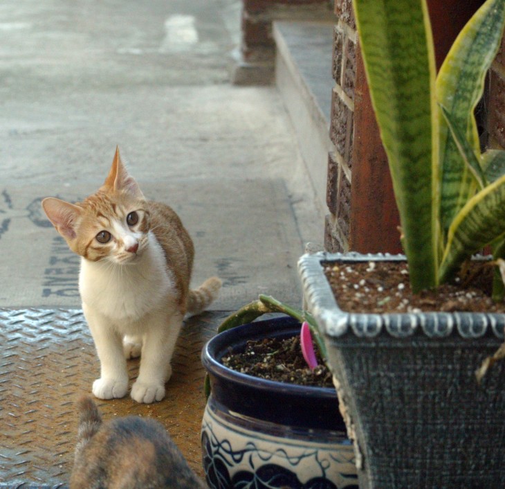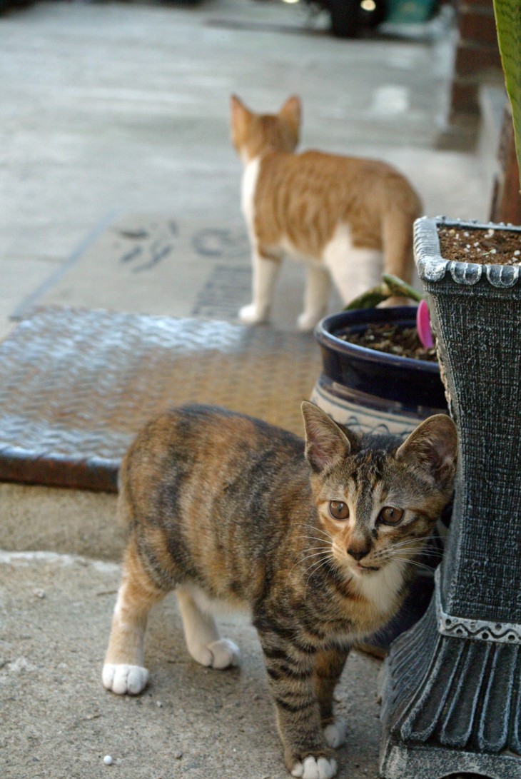 어미와 함께 외출을 시켜줘서 천천히 교육을 시키고 있어요.  고양이 어미들은 신경질 적으로 자기 새끼들이 여기저기 움직이는 것을 잘 통제하고 그래요.