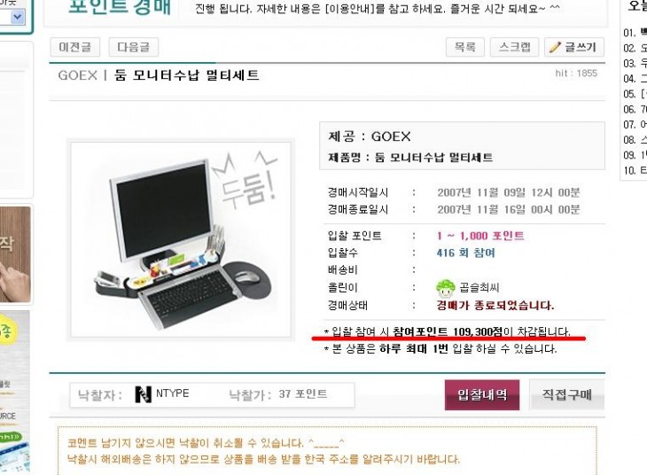 이미 낙찰이 된상품인데 입찰참여안내 문구가 뜨는군요. ㅎㅎ