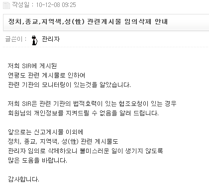해당 공지문 http://sir.co.kr/bbs/board.php?bo_table=cm_free&wr_id=491083