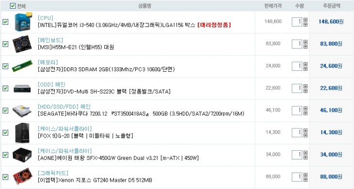 내장 비디오 쓰시고 램을 4G 하시고 하드 1 TB 하시면 가격은 가격은 비슷하거나 더 싸게 나올거에요
