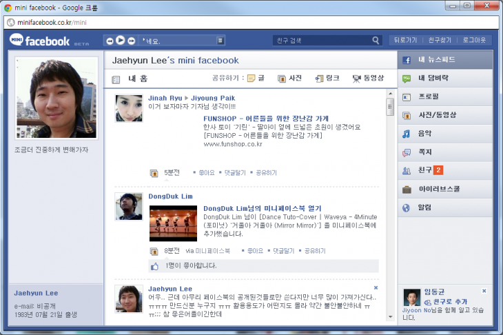 페이스북에서 미니홈피처럼 사용하게 하는 앱이 나왔네요 정보