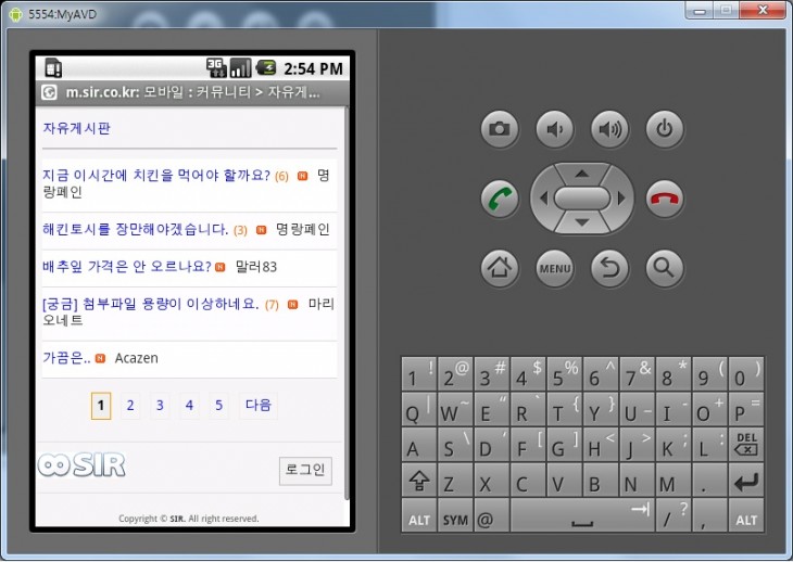 안드로이드 에물레이터에서 모바일 페이지 확인