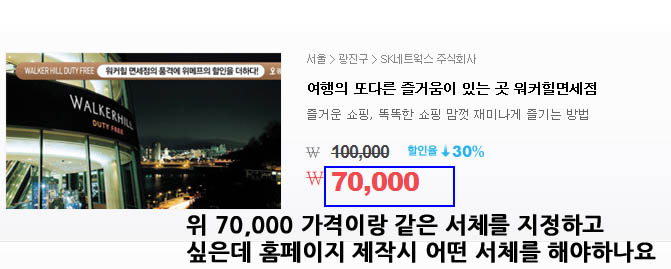 예제사진의 70,000원 부분처럼 서체를 지정하고 싶은데