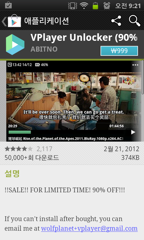 vplayer 어플 90% 할인하네요 정보