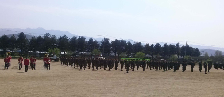 10시에 행사 시작 전에 신병들이 소대별로 군가 부르면서 연병장에 도열하는데