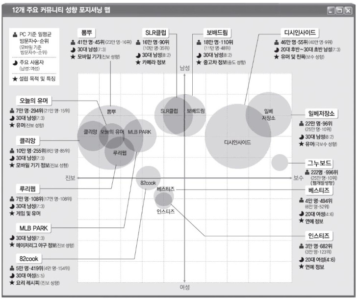 12개 주요 커뮤니터 성향 포지셔닝맵 정보