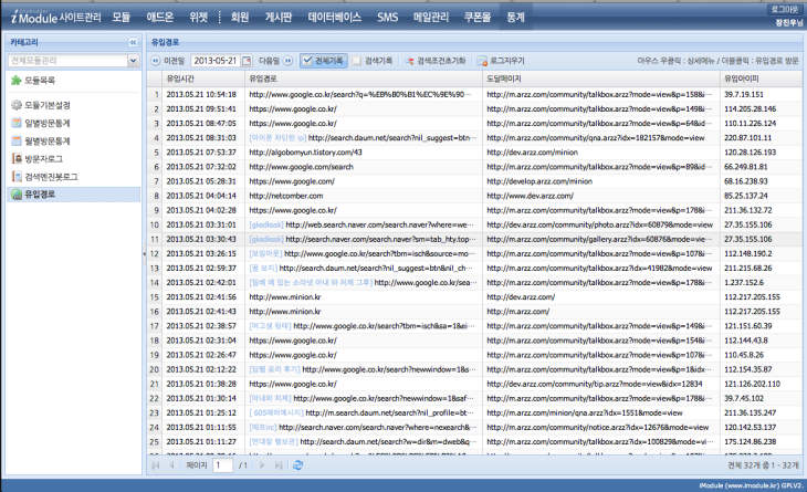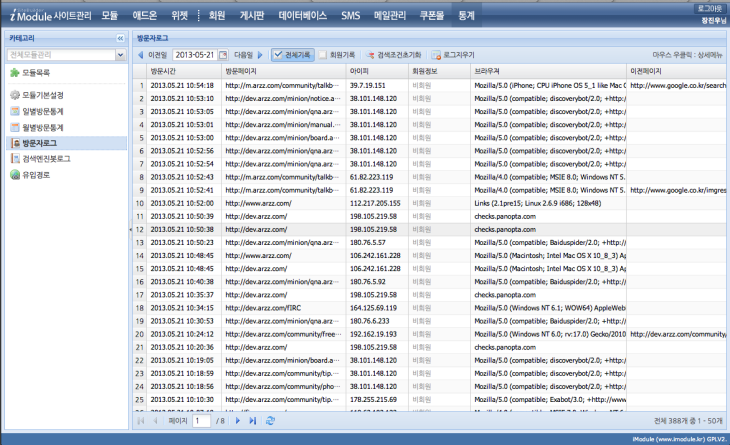 방문자로그에서 한사람이 처음 어느 페이지에 방문해서 어디까지 갔는지 볼 수 있어요.