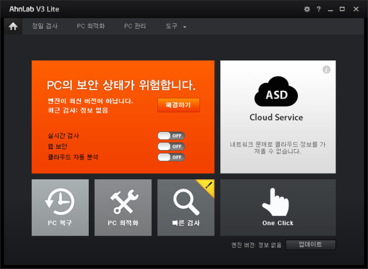 자주 바이러스로 인해 작동이 안되더니 알약이나 v3 업글했군요~