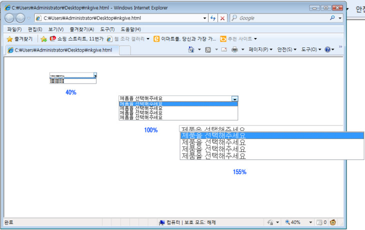ie8에서 ctrl+휠로 확대/축소시 select폼이 상하로 늘어지거나 눌리는 현상 해결방법이있을까요.