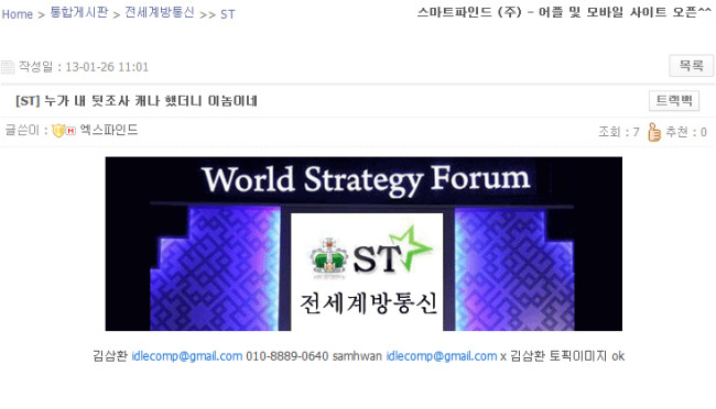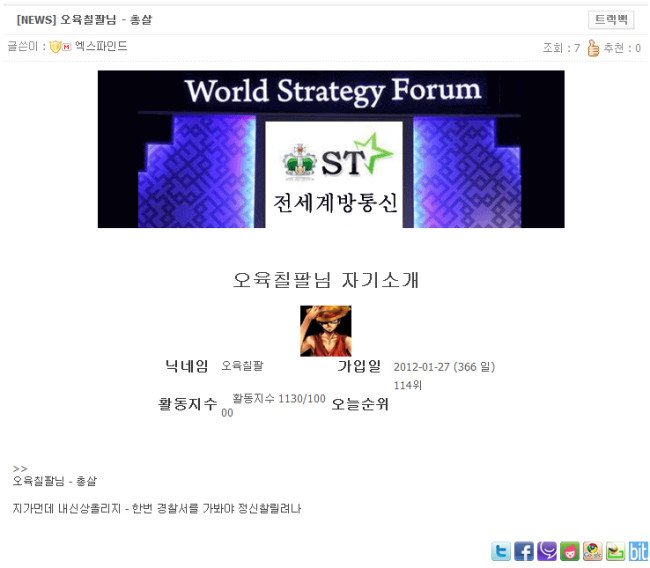 그런데 쪽지로 협박 비스무리한 글이오고 본인 사이트에 다른분 포함 개인정보올리고