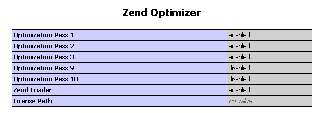 라는 내용으로 테스트 페이지를 하나 만들어서 그림과 같이 zend Optimizer 가 설치되어 있는지 확인하여 주십시오.