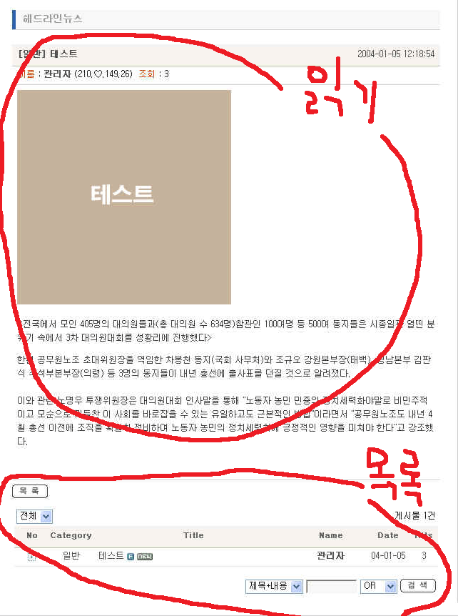 보통은 게시판을 열면 목록만이 주루룩 나오는데...