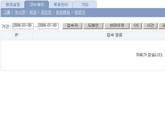 그누보드 관리자 메뉴에서 '회원메일'옆의 방문기록 메뉴본문