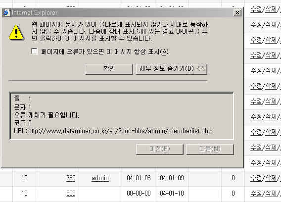 3.25로 업데이트후 관리자 메뉴의 삭제 문제 정보