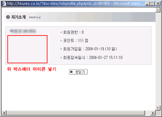 그누보드 [질문] 자기소개에 사진 넣기... 아이콘대신 사진으로~~본문