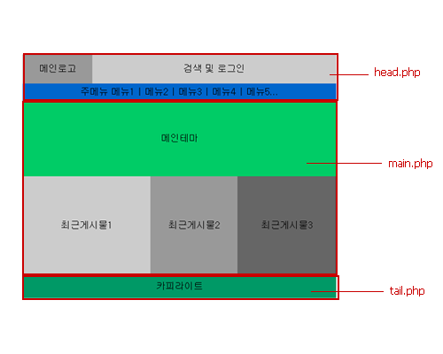일딴 첨부된 그림을 보시면 main.php 영역이 메인테마 까지 포함해서 나눠놨는데...