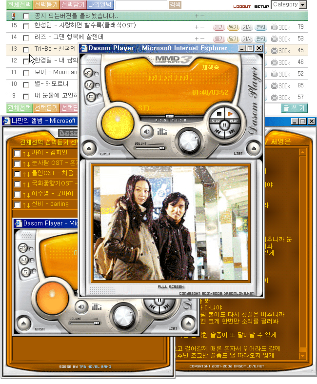 아래 제로보드 mmd3 음악스킨인데  참 맘에 들더군여