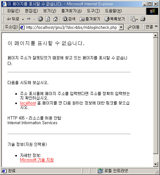 IIS 설정을 다시 한번 체크하라구 해도 제로보드는 아주 잘 되거든요. 제로보드는 zboard로 DB를 만들었고 그누보드의 경우 gnu3로 DB를 만들었습니다. 그리고 아이피로 해도 안되고 localhost 밑 127.0.0.1 역시 안됩니다. 퍼미션은 모든권한이 상속되어 있어서 퍼미션 문제도 아닌것 같습니다.