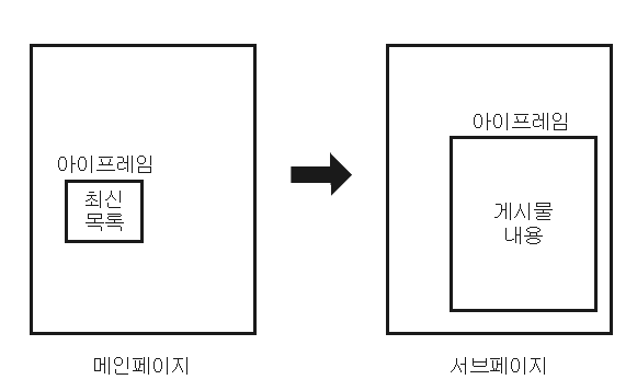 메인페이지의 최근게시물 및 서브페이지의 게시판을 아이프레임으로 만들었을 경우에