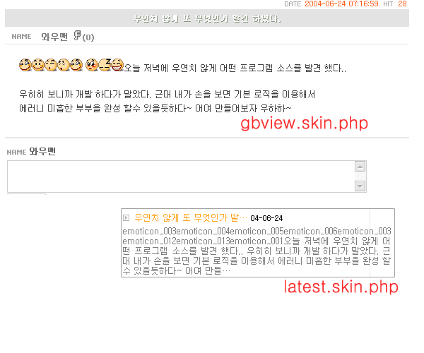 그누보드 이모티콘및 이미지위치 마음대로 팁적용후 최신글에는 나오지 않게 할려면..