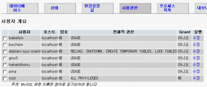 그누보드 [질문]phpMyAdmin 관련 질문..본문