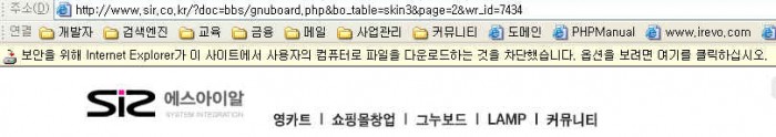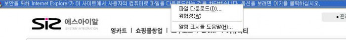 보안을 위하여 Internet Explorer가 이 사이트에서 사용자의 컴퓨터로 파일을 다운로드 하는것을 차단했습니다. 옵션을 보려면 여기를 클릭하십시오.