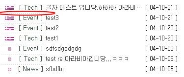 제가 만드는 것은 그림과 같이 카테고리와 new 아이콘, 날짜 등을 모은 최신글입니다..
