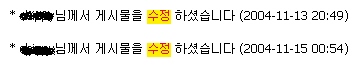 그누보드 글 수정한 사람 아이디와 시간 남기기 질문본문