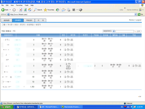 그누보드 관리자 페이지에서 회원관리질문본문