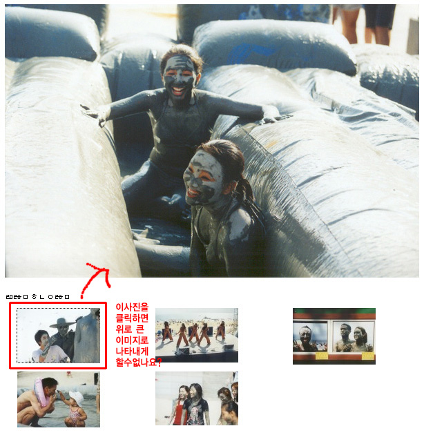소스를 아주 약간 수정했는데요....작은 이미지를 클릭하면 원본이미지가 보이는게 아니라...