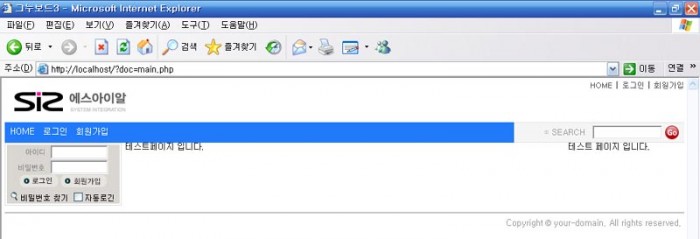대신 http://localhost 만 입력하면 main.php에 해당하는 문서만 출력되네요. 예전엔 안그러고 index에서 각각 불러왔던거 같은데 이젠 main.php에서 head와 tail을 묶어 주고 index에서 그것을 불러오나 봅니다.
