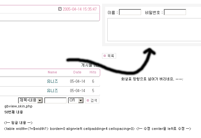 gbview.skin.php 파일에서 코멘트 쓰는 윗부분에