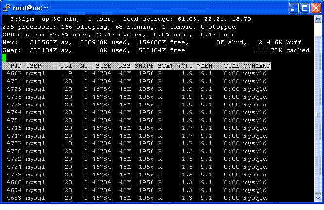 음.. 만약 관리자님께서 추측하신 시간을 많이 잡아먹는 몇몇 쿼리를 찾아내지 못한다면 사용자들이 많아서 그런것으로 예상할수도 있겠군요.