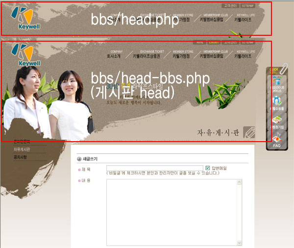 그림과 같이 게시판에 글을 쓰려고 하면 상단 head가 2개 생깁니다.