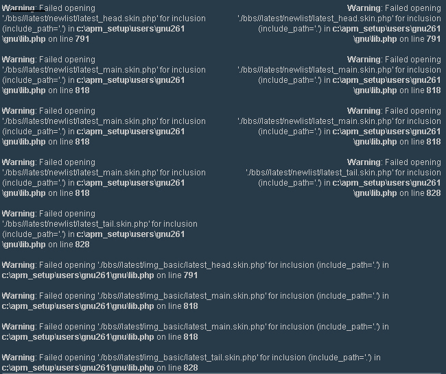그누보드 인터로 화면 에러출력이 이만큼본문
