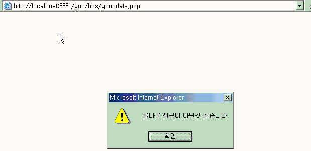 alert("올바른 접근이 아닌것 같습니다.", $gnu_path);