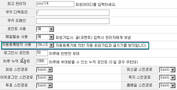 기본스킨에는 로봇방지 코드의 부분이 있을 것이나