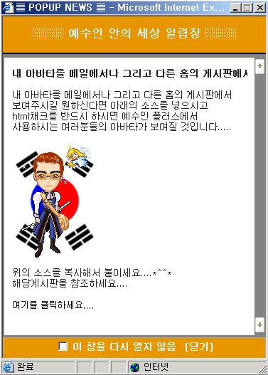 <font size="2" color="#FFFFFF">이 창을 다시 열지 않음 </font> <a href="javascript:history.onclick=closeWin()"><font size="2" color="#FFFFFF">[닫기]</a></font></b></div></td></tr>